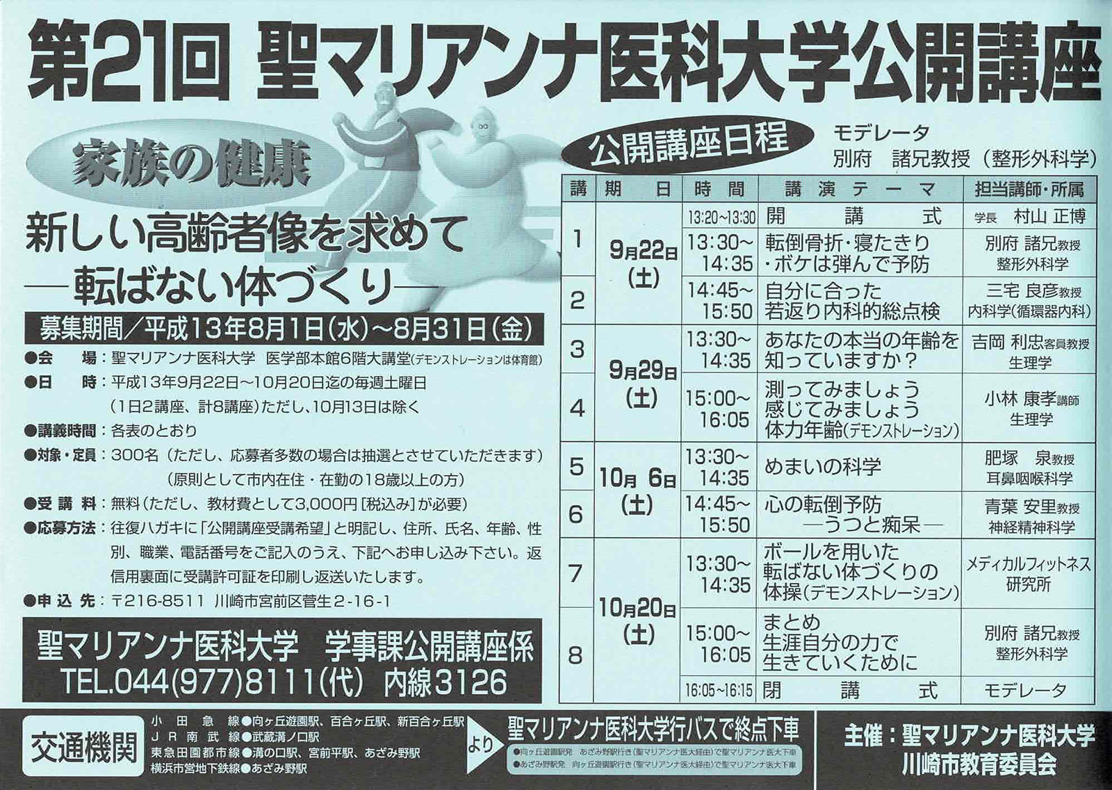 平成13年8月に、聖マリアンナ医科大学主催で地域の方々のために行われた第21回の公開講座