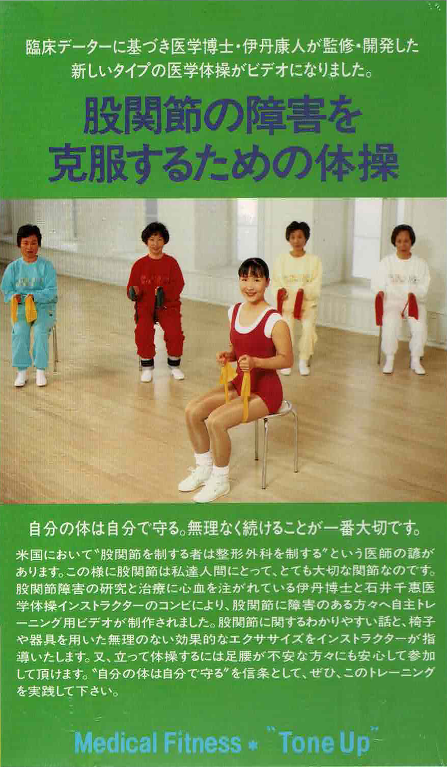 その後、伊丹先生指示の下、股関節症対応の体操を京都大学名誉教授森谷敏夫先生と共に研究作成にあたり、ボールエクササイズを執筆、ビデオ(画像)も作成し医学体操実技の基礎を作りました。